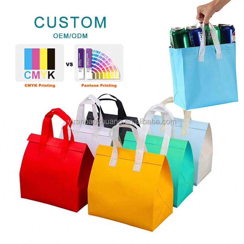 กระเป๋าเก็บความเย็นแบบใช้แล้วทิ้ง ผลิตจากอลูมิเนียมฟอยล์และผ้าไม่ทอ สำหรับใส่เครื่องดื่มร้อน-เย็น อาหารเดลิเวอรี่ พร้อมโลโก้สั่งทำได้