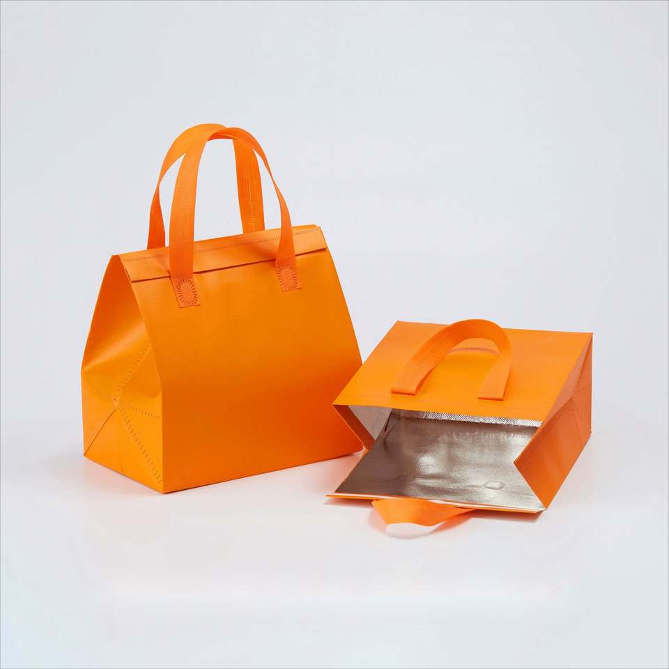 กระเป๋าเก็บความร้อนแบบใช้แล้วทิ้ง ผลิตจากผ้าไม่ถักทอ บุฟอยล์อะลูมิเนียม พร้อมโลโก้สั่งทำพิเศษ สำหรับใส่อาหารกลับบ้าน/อาหารกลางวัน