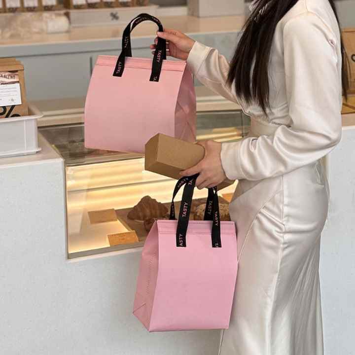 กระเป๋าเก็บความเย็นแบบใช้แล้วทิ้ง พิมพ์โลโก้ได้ วัสดุผ้าไม่ถักทอ สำหรับใส่ชานม อาหารแบบนำกลับบ้าน ปิ้งย่าง บุฟอยล์ สำหรับกิจกรรมกลางแจ้ง