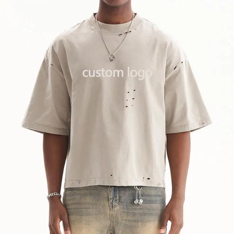 เสื้อยืดผู้ชายผ้าฝ้ายถัก 100% คุณภาพสูง สไตล์วินเทจ ล้างสีแบบแอซิด แห้งเร็ว พิมพ์โลโก้ตามสั่ง ดีไซน์หรูหรา