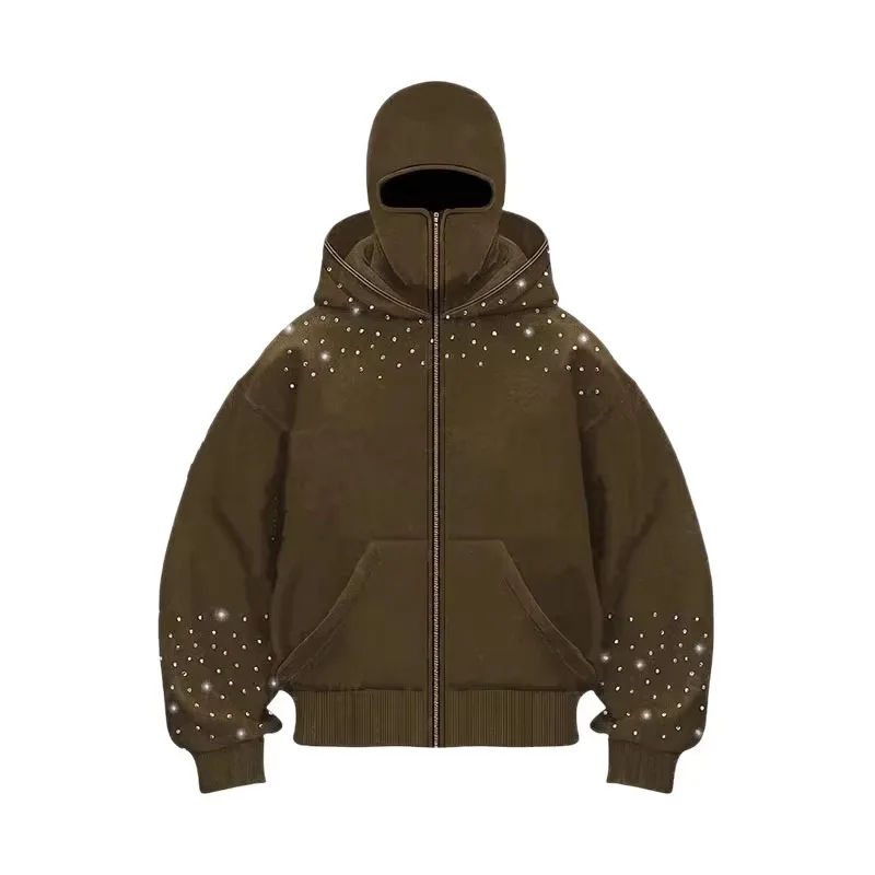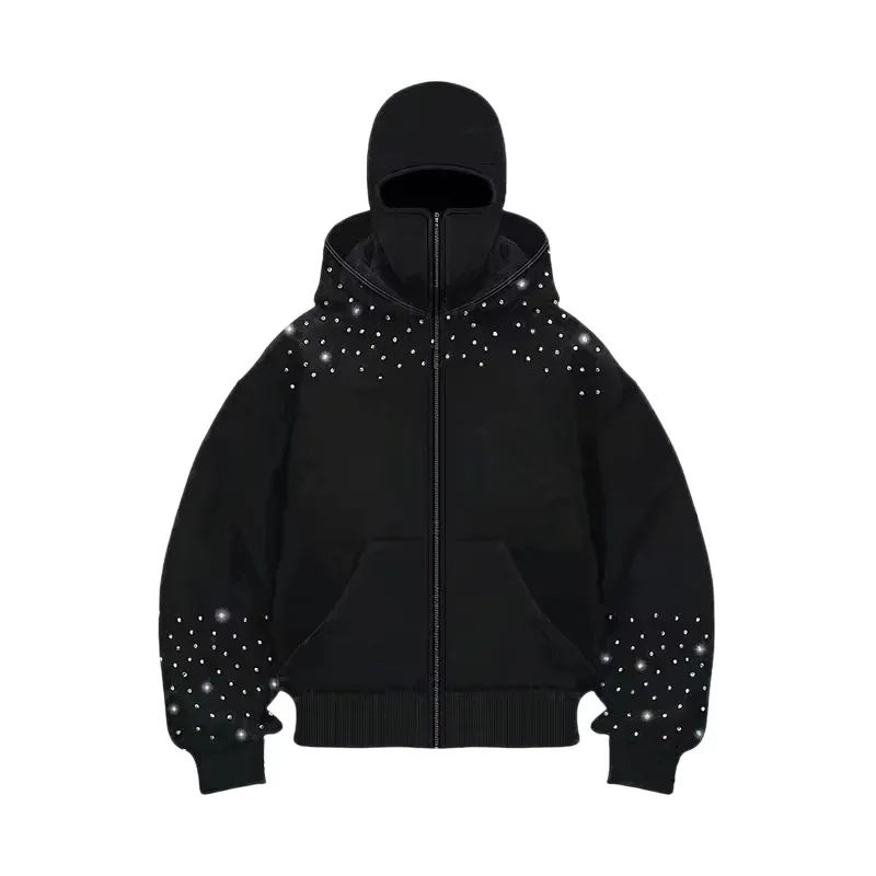 เสื้อฮู้ดดี้นินจาคู่แบบมีโลโก้สั่งทำพิเศษสำหรับผู้ชาย ทรงโอเวอร์ไซส์ ผ้าหนานุ่ม ซิปเต็มตัว ปิดหน้าได้ ผ้าฝ้ายฟลีซ 100% ประดับคริสตัลสั่งทำพิเศษ สำหรับฤดูหนาว