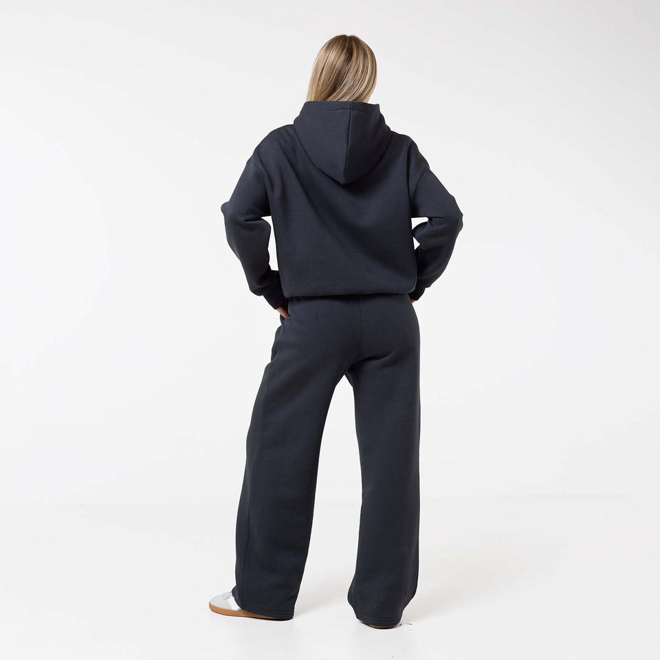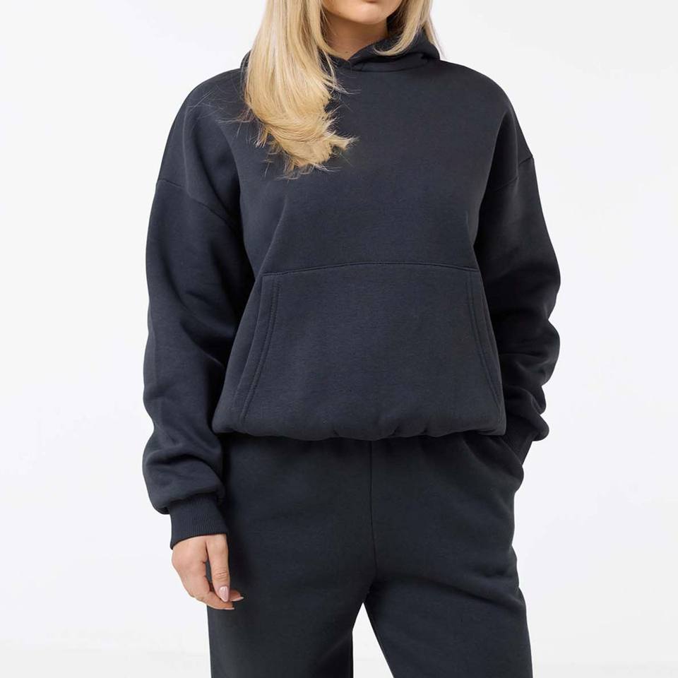 เสื้อฮู้ดดี้แบบมีโลโก้สั่งทำพิเศษ แขนเสื้อแบบดรอปโชลเดอร์ พร้อมกางเกงวอร์มขายาว ผ้าคอตตอนเนื้อหนา สไตล์สตรีทแวร์สำหรับผู้หญิง รับผลิตแบบ OEM ขายส่ง