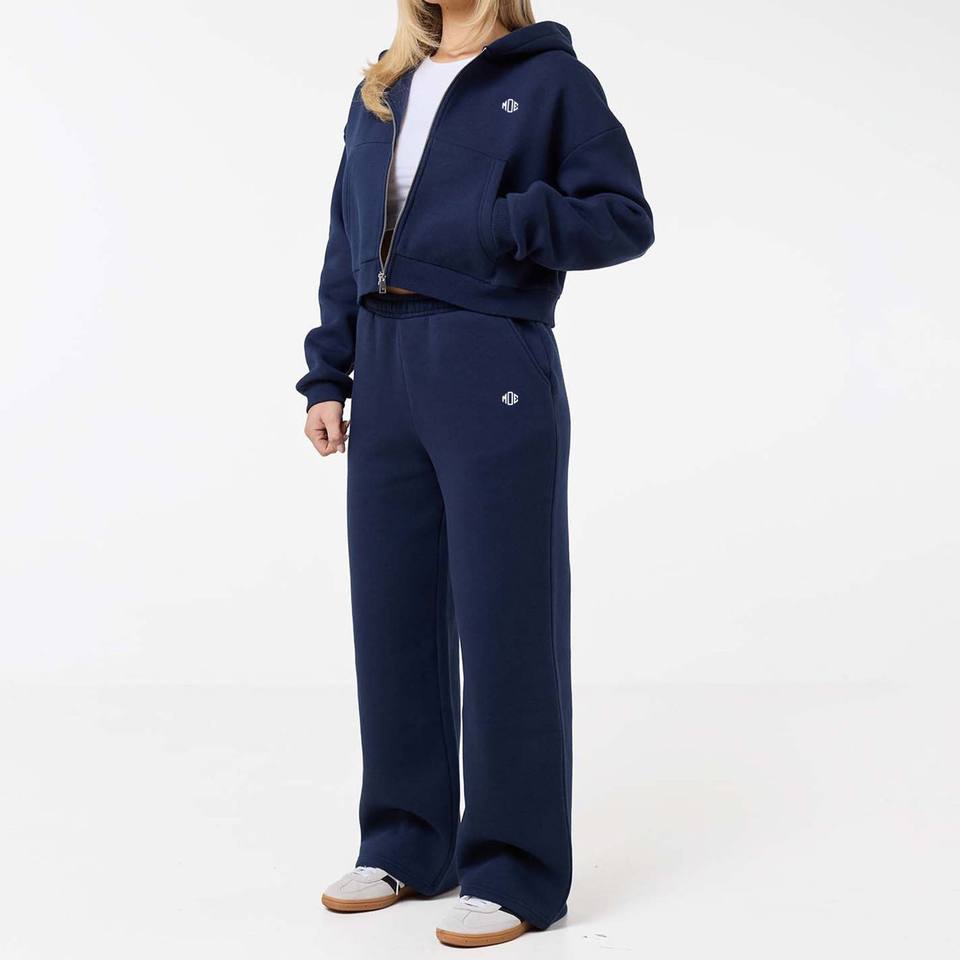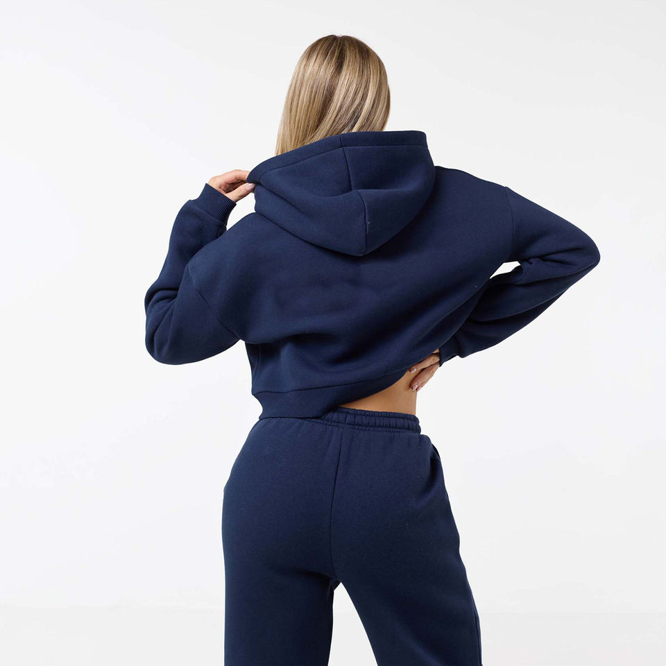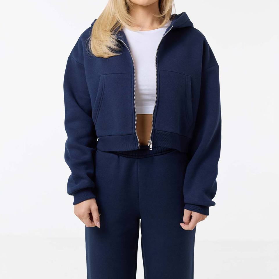 เสื้อฮู้ดดี้แบบมีซิป แขนเสื้อแบบดรอปโชลเดอร์ พร้อมกางเกงจ็อกเกอร์ ผ้าหนา 100% ผ้าฝ้าย สำหรับผู้หญิง สไตล์สตรีทแวร์ รับผลิตแบบ OEM ขายส่ง พร้อมสกรีนโลโก้ตามสั่ง