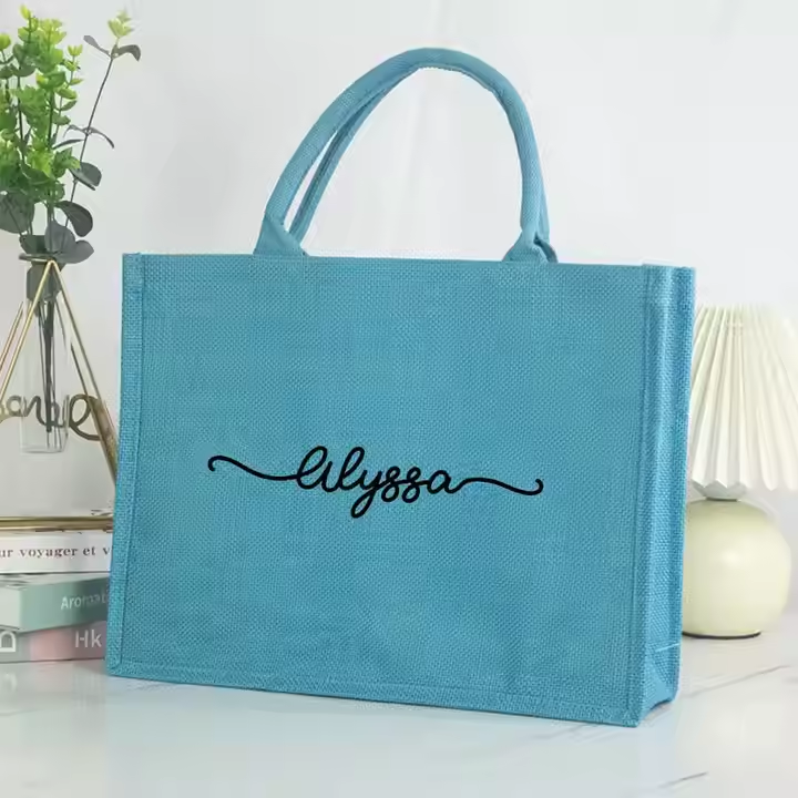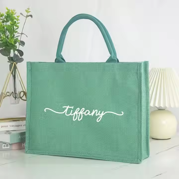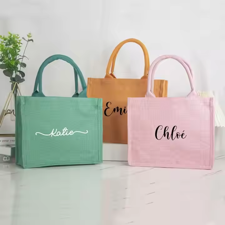 ถุงผ้าปอกระเจาทำจากผ้าป่านย้อมสีลูกกวาดใช้ซ้ำได้ของขวัญสำหรับเพื่อนเจ้าสาวช้อปปิ้งโลโก้แบบกำหนดเอง