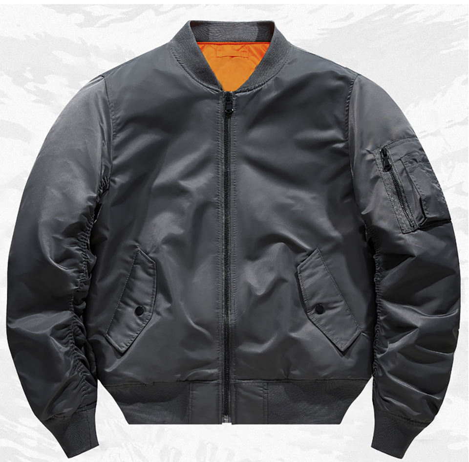 แจ็กเก็ตบอมเบอร์สำหรับผู้ชายแจ็คเก็ตเบสบอลผ้าโพลีเอสเตอร์หนาย้อมสีสำหรับฤดูหนาว