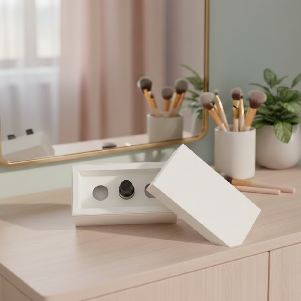 กล่องเก็บเครื่องสำอางกระดาษแข็งรักษ์โลกพร้อมโลโก้สั่งทำ | บรรจุภัณฑ์เครื่องสำอางแบบกระดาษเคลือบยูวีและเคลือบด้านสำหรับลิปสติก