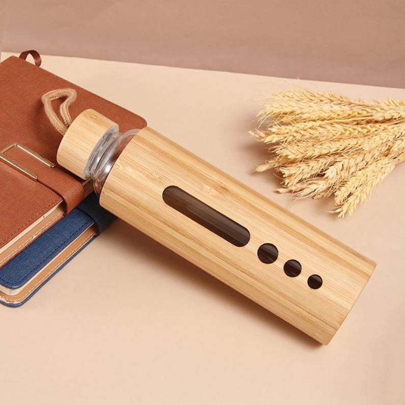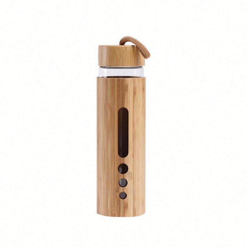 ขวดน้ำแก้วโบโรซิลิเกตคุณภาพสูงรักษ์โลก พิมพ์โลโก้ได้ ความจุ 500-600 มล. ฝาไม้ไผ่ ได้รับมาตรฐาน CE พร้อมเชือกสำหรับพกพา เหมาะสำหรับออกกำลังกาย