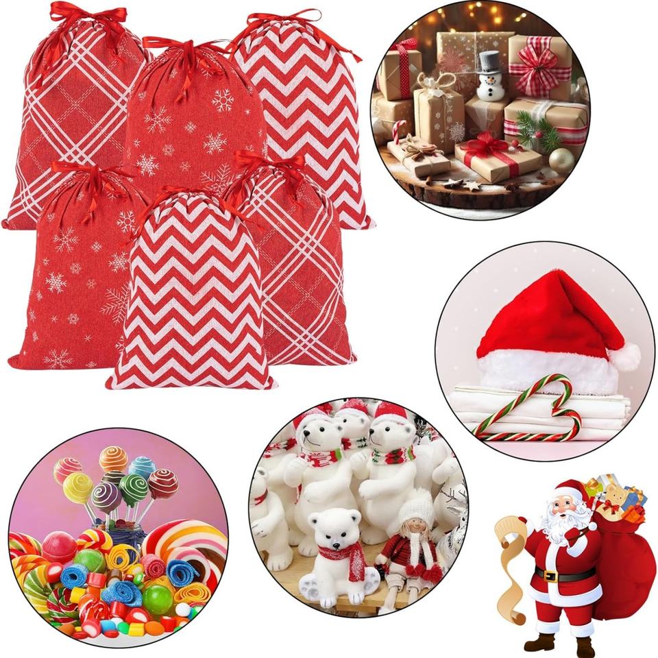 ถุงเก็บของคริสต์มาสขนาด 7 นิ้ว แบบมีเชือกผูก ทำจากผ้าอ๊อกซ์ฟอร์ด ทนทาน เป็นมิตรกับสิ่งแวดล้อม พร้อมโลโก้สั่งทำพิเศษ สำหรับห่อของขวัญในช่วงเทศกาล