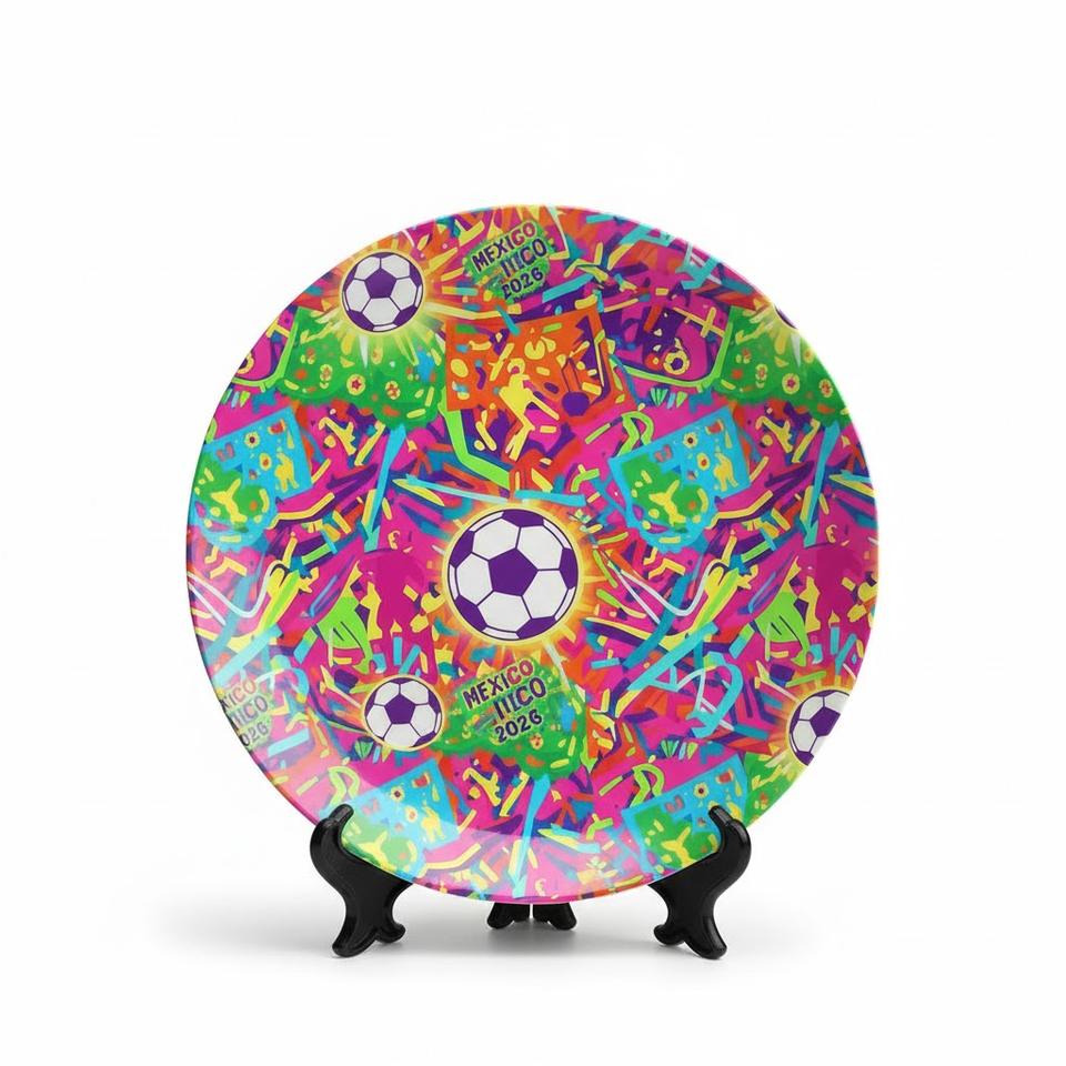 จานเมลามีนลายฟุตบอลทรงกลมแบบเป็นมิตรกับสิ่งแวดล้อมพร้อมโลโก้สั่งทำ สำหรับงานวันเกิดและงานปาร์ตี้วันแข่งขันฟุตบอลปี 2026