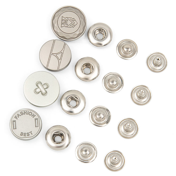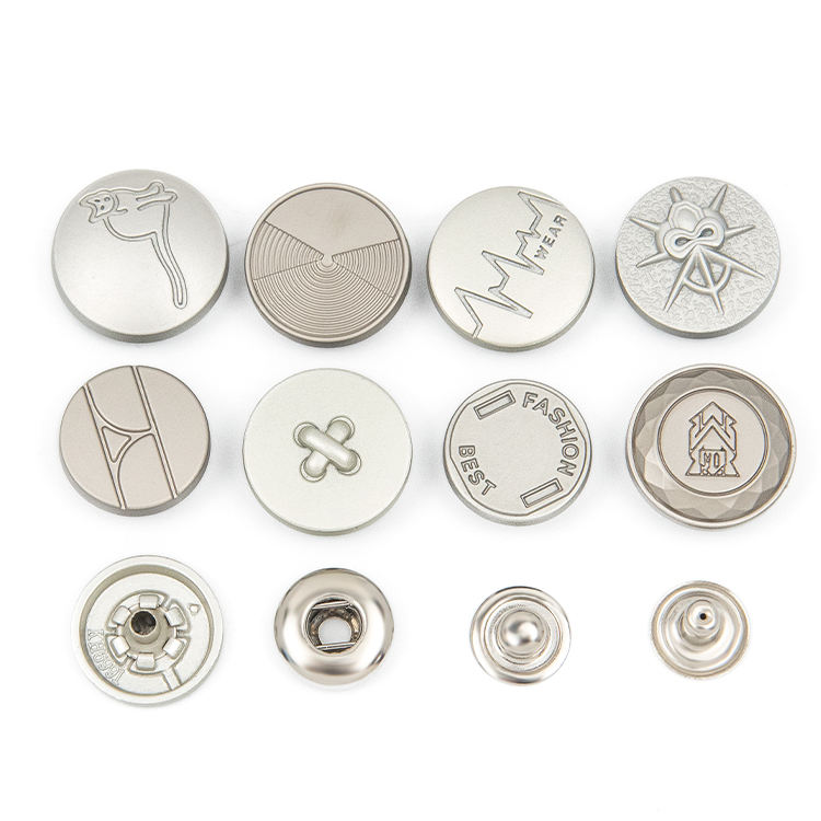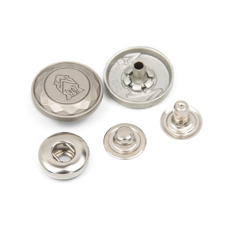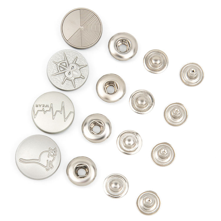 กระดุมแป๊กเสื้อผ้าแบบสแนปสี่ชิ้น ผลิตจากโลหะผสมสังกะสี เป็นมิตรกับสิ่งแวดล้อม พร้อมโลโก้สั่งทำได้