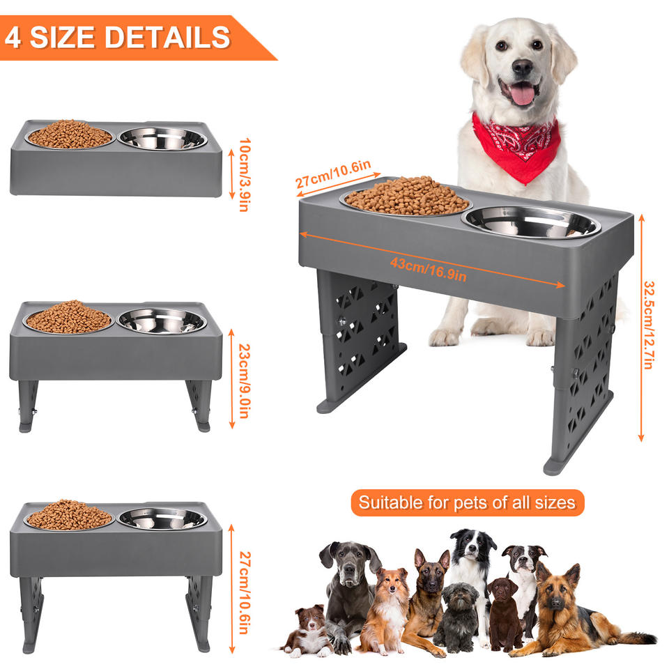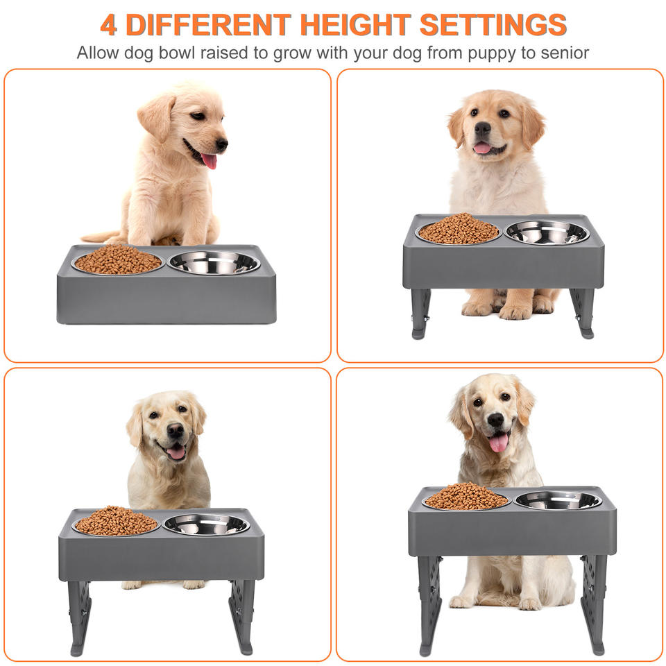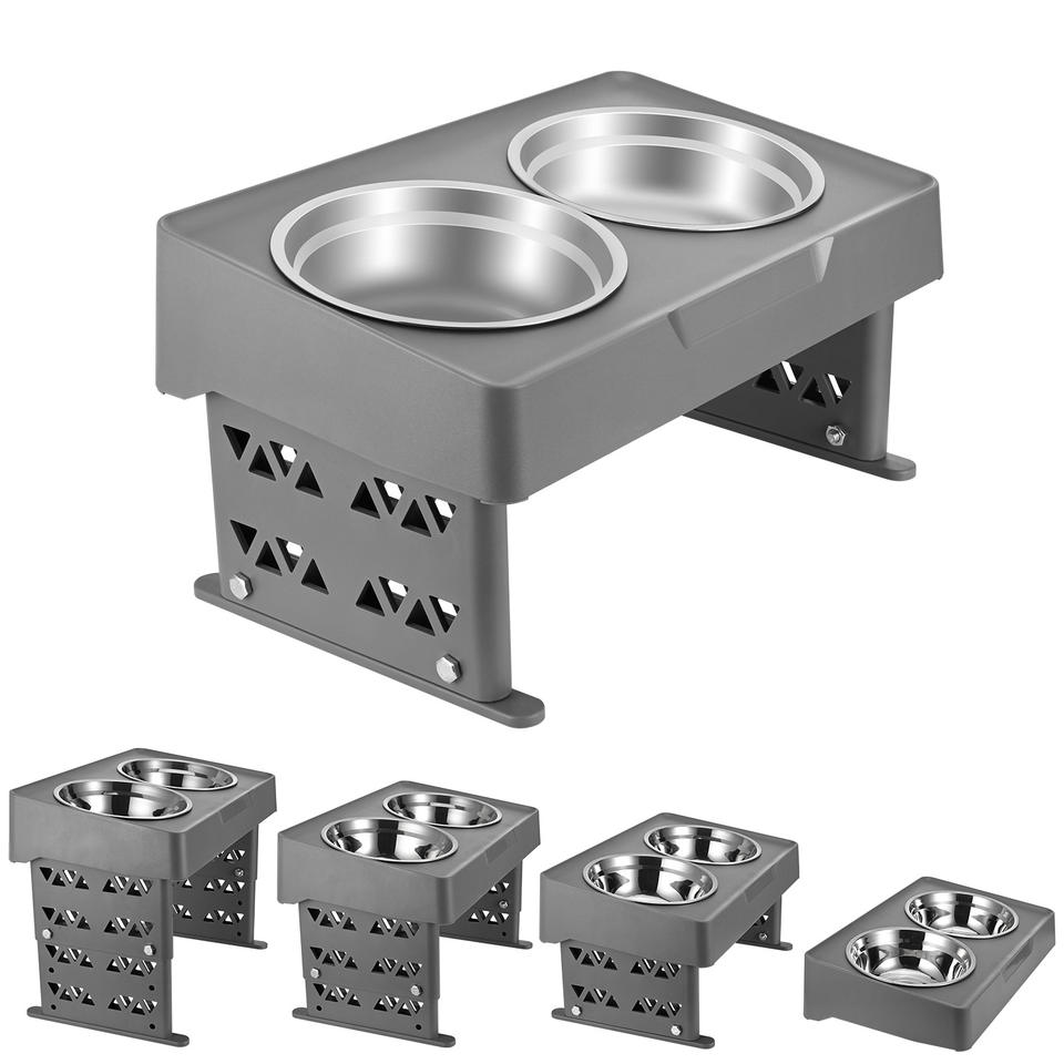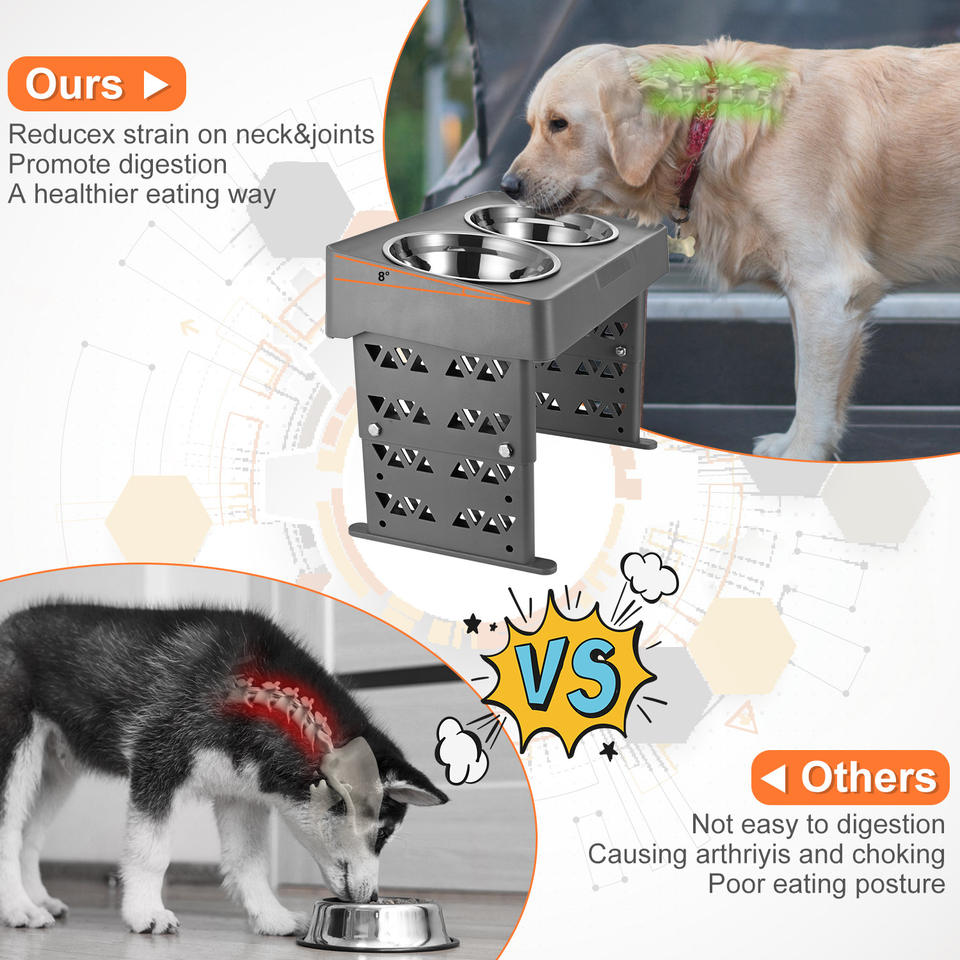 ชามอาหารสัตว์เลี้ยงแบบยกสูงพร้อมโลโก้สั่งทำพิเศษ ชามสแตนเลสคู่สำหรับแมวและสุนัข