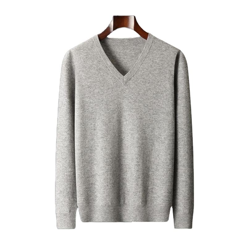 เสื้อสเวตเตอร์ถักคอวีสำหรับผู้ชายเสื้อถักแขนยาวปักโลโก้ได้ตามต้องการ