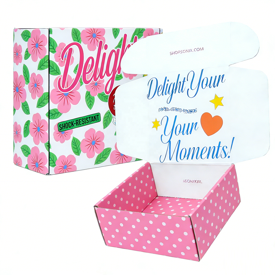 Custom Logo Embossed Corrugated Board Self Erecting Christmas Mailer Shipping Boxes High Quality Recycled Materials Dress