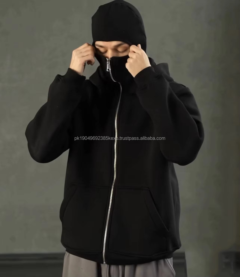 เสื้อฮู้ดดี้แบบมีฮู้ดคู่ปักโลโก้ตามสั่ง ไซส์ใหญ่ ซิปเต็มตัว พร้อมหน้ากากสกีแบบนินจา ผ้าฝ้าย 100% เสื้อฮู้ดดี้สไตล์แก๊งสเตอร์สำหรับผู้ชาย