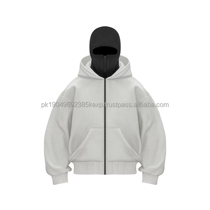 เสื้อฮู้ดดี้ปักโลโก้แบบกำหนดเองสำหรับผู้ชาย สไตล์แก๊งสเตอร์ แบบคลุมหน้า สองชั้น ซิปเต็มตัว ทรงโอเวอร์ไซส์ ดีไซน์ 3 มิติ ไซส์พลัส