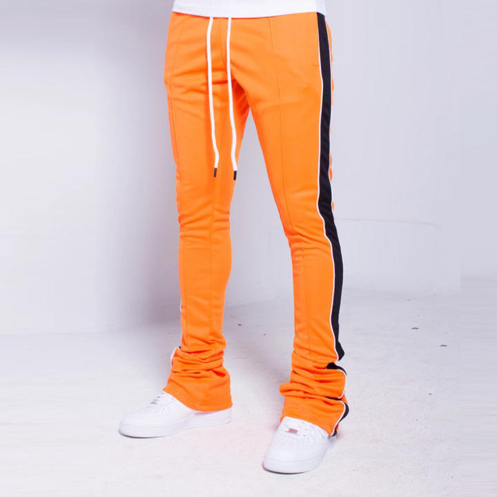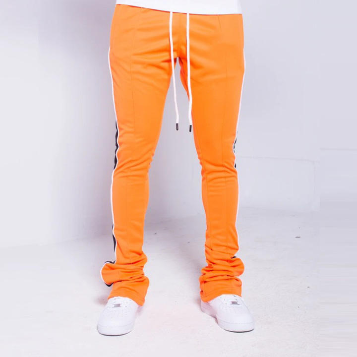 กางเกงจ็อกเกอร์เอวสูงของผู้ชายปักโลโก้แบบลำลองกางเกงวอร์มแถบด้านข้างพร้อมเชือกสำหรับผู้ชาย