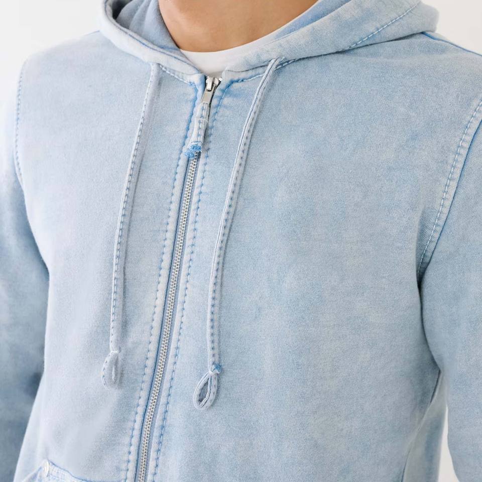 เสื้อฮู้ดดี้แขนยาวผ้ายีนส์วินเทจปักโลโก้ตามสั่ง พิมพ์ลาย สำหรับผู้ชาย สไตล์ใหม่ ซิปเต็มตัว ผ้าฝ้ายยีนส์ย้อมสีพื้น สำหรับเด็กผู้ชาย