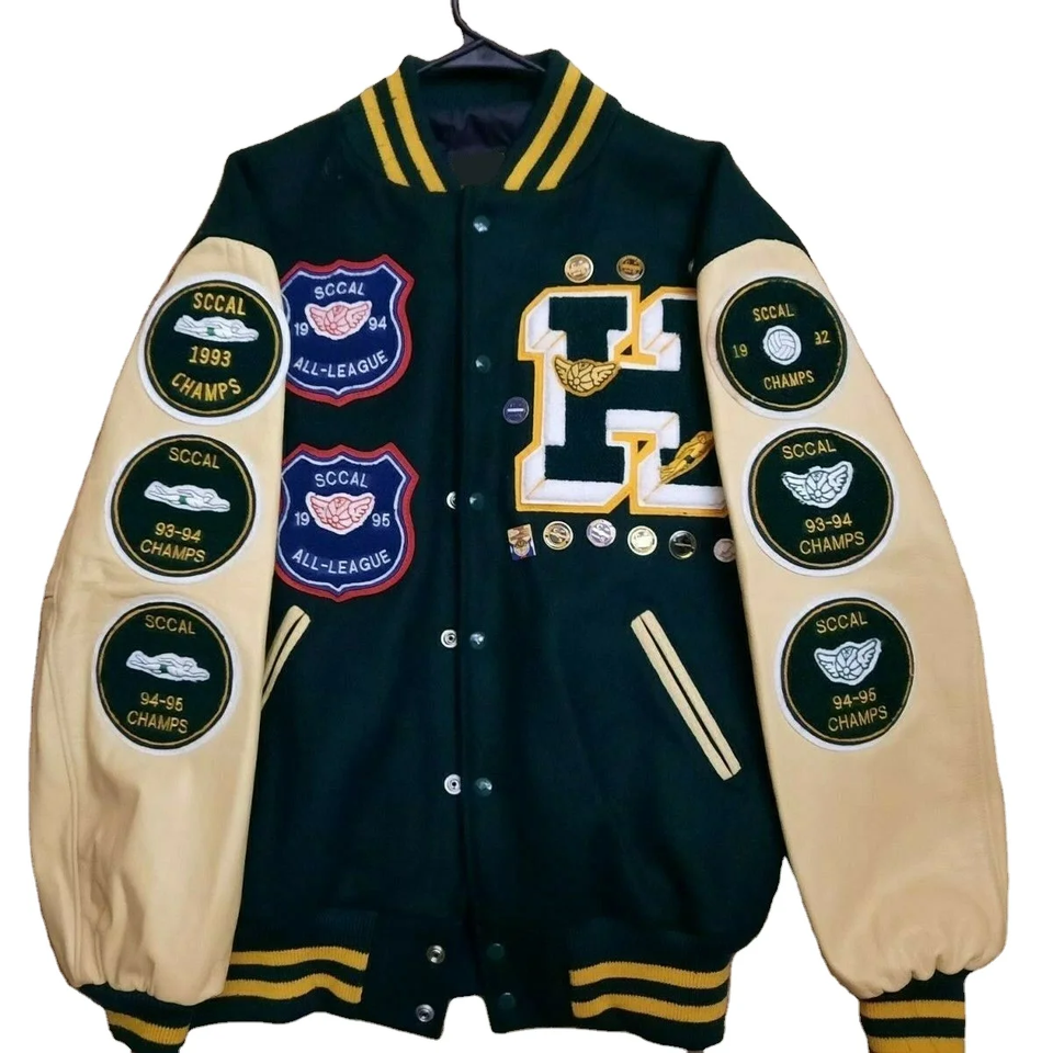 Custom Logo Embroidered Varsity Men's Jackets Women's Jackets Wool Body Leather Sleeves Letterman Jackets