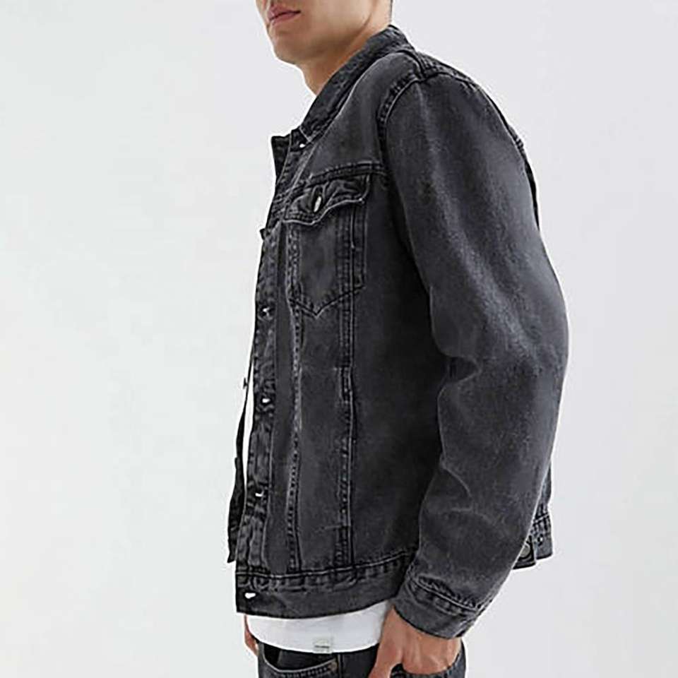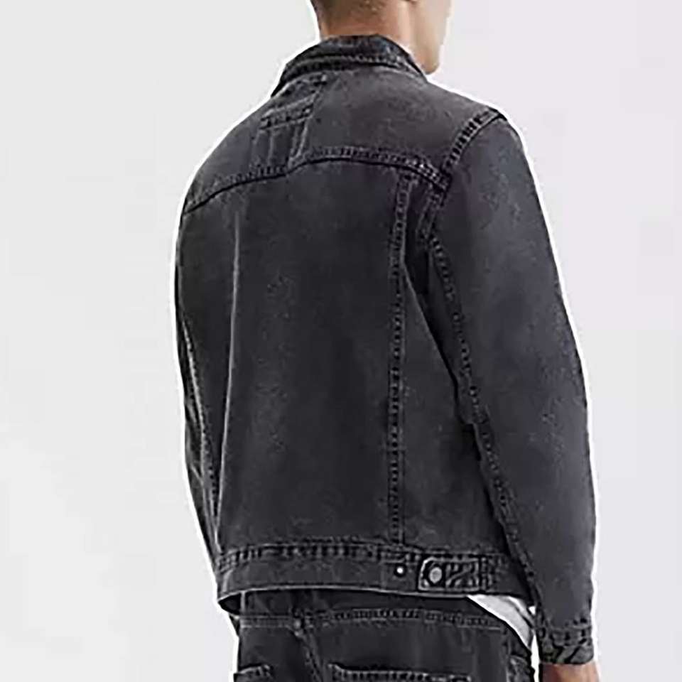 เสื้อแจ็คเก็ตเดนิมวินเทจทรงบอยเฟรนด์สีพื้นปักโลโก้ตามสั่งสำหรับผู้ชายสไตล์สตรีทแวร์ฤดูหนาว