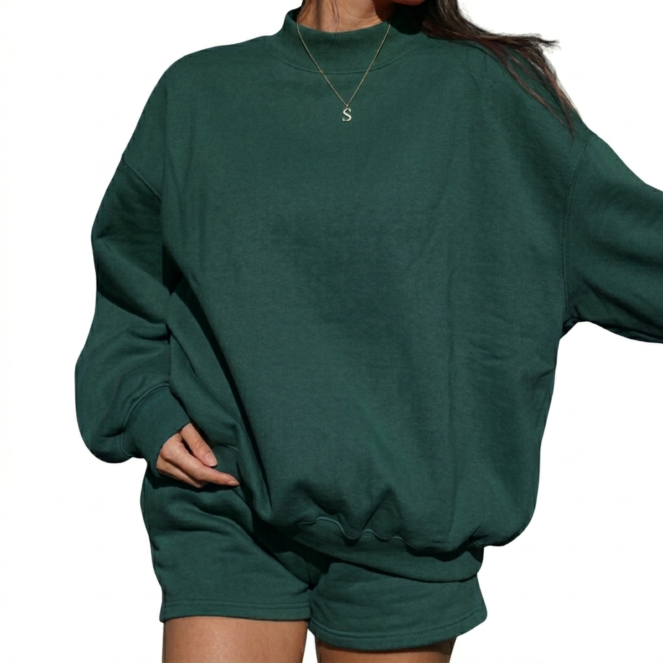 ชุดเซ็ตสองชิ้นสำหรับฤดูหนาว ผ้าหนานุ่ม ระบายอากาศได้ดี แห้งเร็ว เป็นมิตรกับสิ่งแวดล้อม คอเต่าและกางเกงขาสั้นทรงโอเวอร์ไซส์ พร้อมปักโลโก้ตามสั่ง