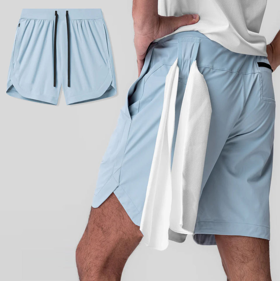 กางเกงขาสั้นออกกำลังกายลำลองสำหรับวิ่งและกิจกรรมกลางแจ้ง ผ้าซักได้ มีเชือกผูกเอว ปักโลโก้ตามสั่ง เหมาะสำหรับใส่วิ่งและออกกำลังกายทุกวัน