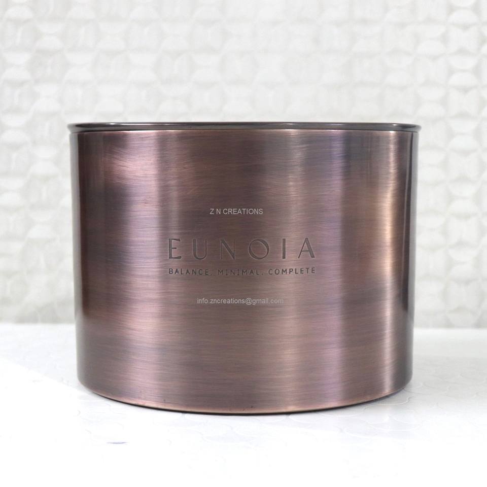 ภาชนะใส่เทียนโลหะทำมือพร้อมโลโก้สั่งทำพิเศษ ดีไซน์หรูหรา แนวศิลปะ กระป๋องทองเหลืองสีดำทองแดง ฝาปิดแกะสลักด้วยเทคนิคการแกะสลัก