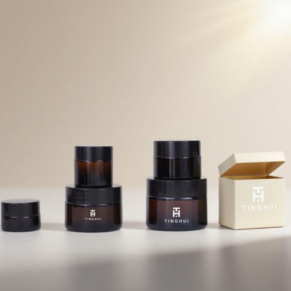 ขวดแก้วเปล่าสำหรับเครื่องสำอางพร้อมโลโก้สั่งทำ ขนาด 5 กรัม 10 กรัม 15 กรัม 20 กรัม 1 ออนซ์ 2 ออนซ์ 4 ออนซ์ 100 กรัม ขวดแก้วครีมบำรุงผิว 200 กรัม ขวดแก้วสีชาพร้อมฝาปิด