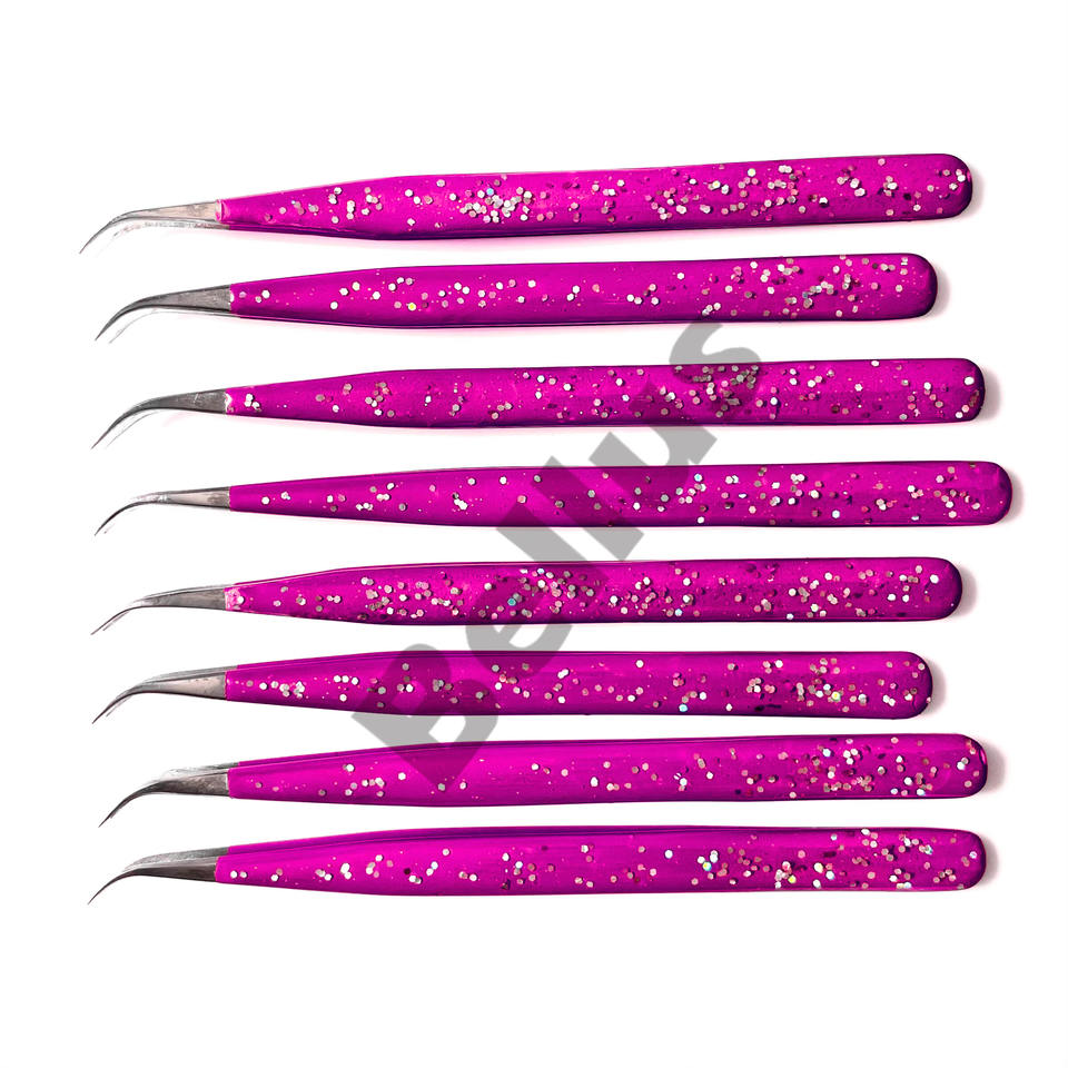 Custom Logo Ergonomic Glitter Eyelash Extension Tweezers for Volume and Isolation Professional Grade Lash Artist Must-Have Tool