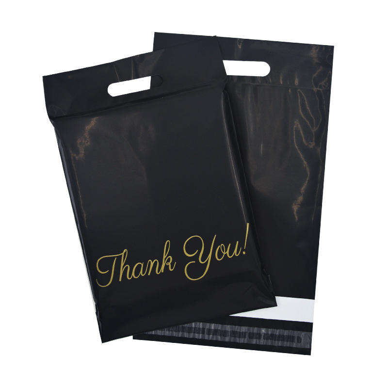ถุงเมลขอบคุณแบบด้านหรูหราพร้อมหูหิ้ว พิมพ์โลโก้ได้ตามต้องการ ปิดผนึกด้วยกาวสองชั้น วัสดุโพลี HX-MB-035 สำหรับรองเท้าและเสื้อผ้า