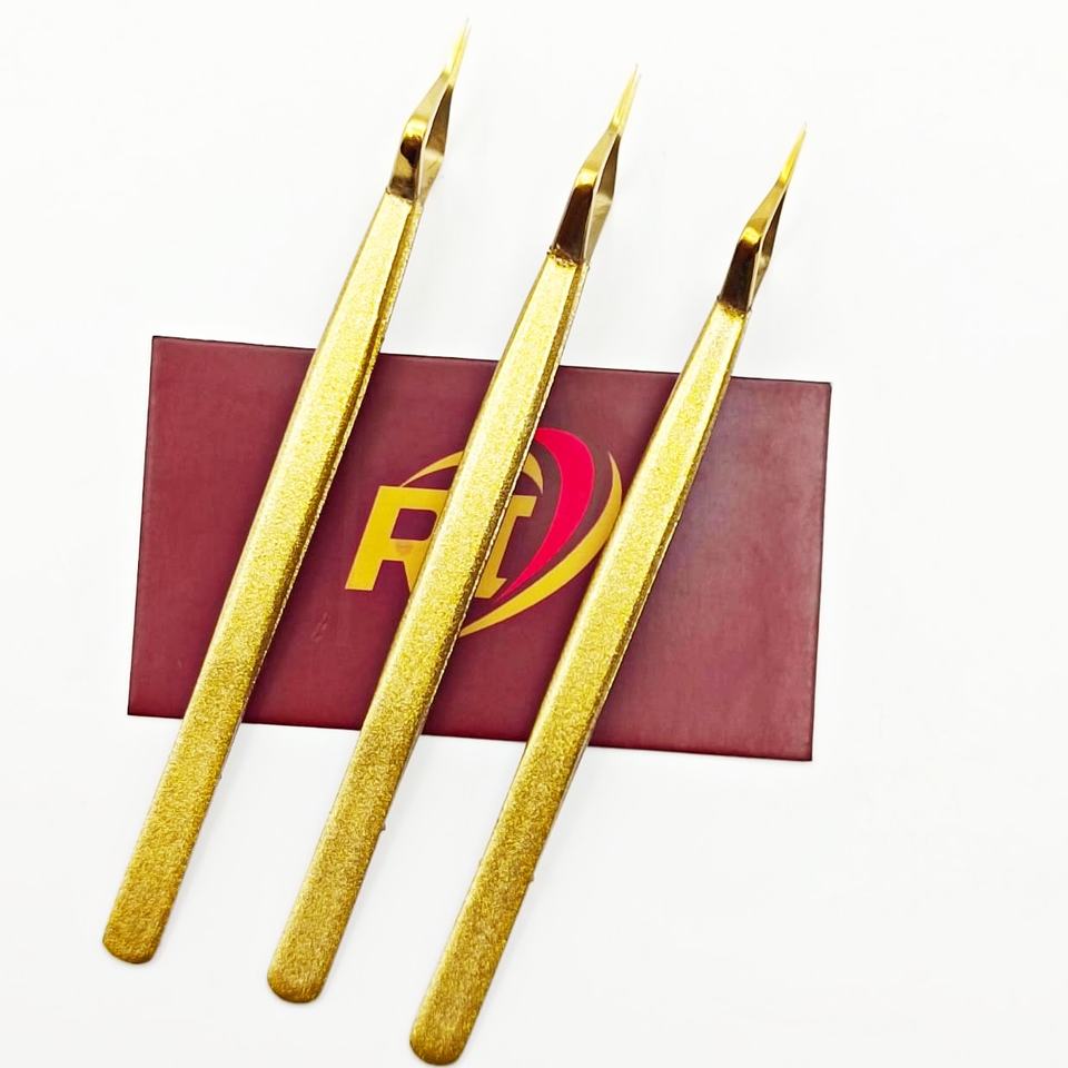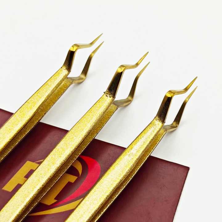 แหนบแยกขนตาเครื่องมือความงามแบบมืออาชีพแหนบต่อขนตาปลอมสีทองมีความแม่นยำทำโลโก้ได้ตามต้องการ