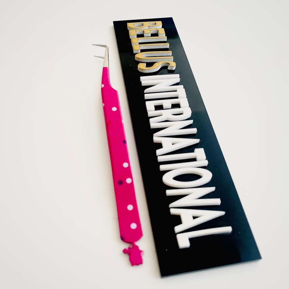 แหนบขนตาปลอมแบบปรับแต่งโลโก้แหนบปลายแหลมสเตนเลสสีชมพูสำหรับขนตาเพิ่มวอลลุ่ม