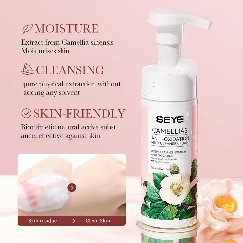 โฟมทำความสะอาดผิวหน้าคาเมลเลียอะมิโนแอซิดมูสโฟมล้างหน้ากำจัดและลอกผิวป้องกันการแพ้โลโก้ตามต้องการ