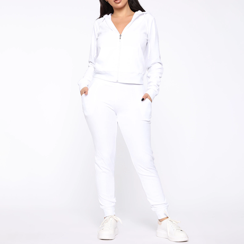 ชุดวอร์มผู้หญิง2ชิ้นถักวาฟเฟิลสำหรับใส่ไปยิมวิ่งจ๊อกกิ้งมีซิปกางเกงขากว้าง