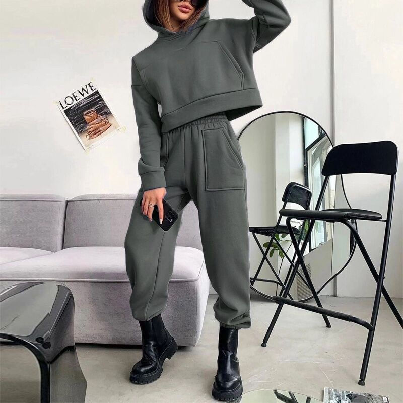 ชุดกีฬา2ชิ้นสำหรับผู้หญิงชุดวอร์มออกกำลังกายมีฮู้ดสำหรับฤดูใบไม้ร่วงฤดูหนาวโลโก้ออกแบบได้ตามต้องการ