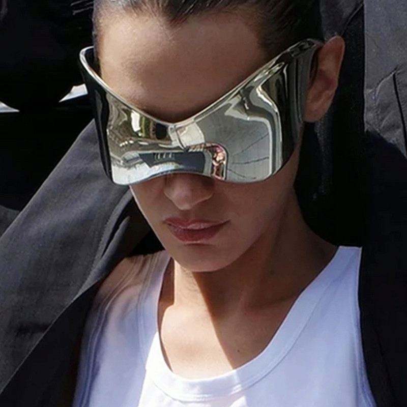 Custom Logo Fashion Oversized Y2k Sun Glasses Men Rimless Silver Goggle Punk Sport Futuristic Sunglasses Women Men