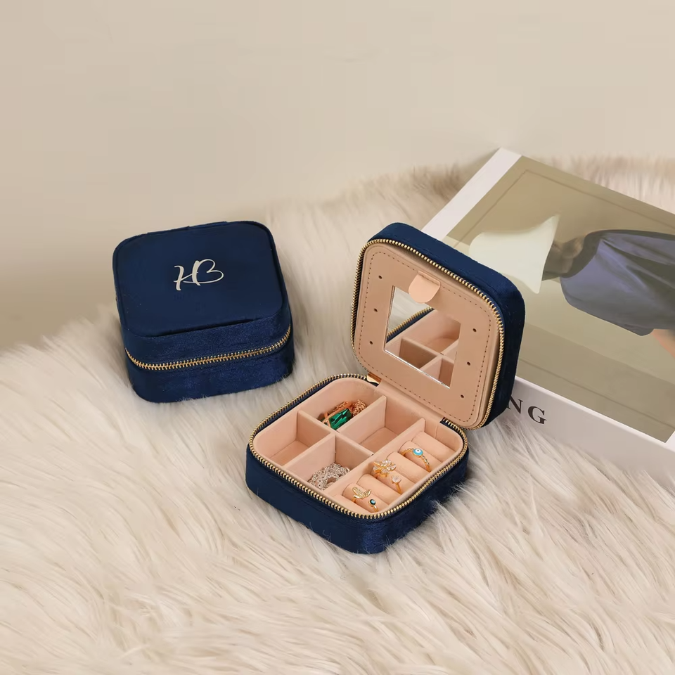 กล่องเครื่องประดับแฟชั่นสำหรับจัดงานแต่งงานกำมะหยี่จัดเก็บของสำหรับใส่ต่างหูแหวนสร้อยคอแบบสั่งทำโลโก้ได้ตามต้องการ