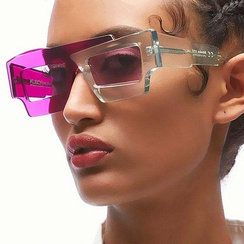 แว่นกันแดดแฟชั่นผู้หญิงทรงเหลี่ยมแบบไม่สมมาตร สีม่วงชมพู ป้องกันรังสียูวี 400 พร้อมโลโก้สั่งทำพิเศษ