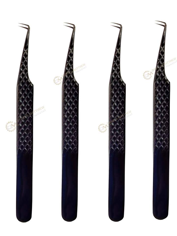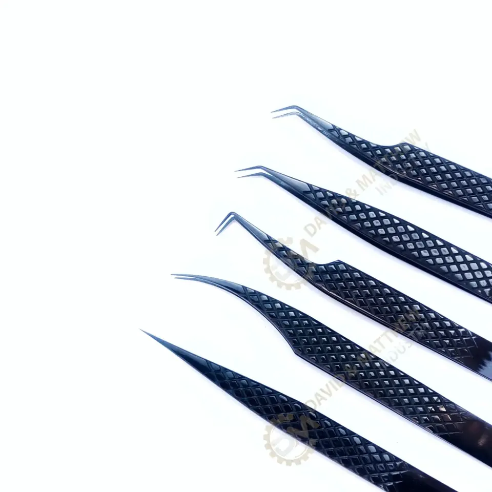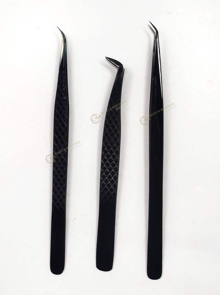 High Quality Durable Custom Logo Black Stainless Steel Eyelash Tweezers Pointed Tip Fiber Volume Applicator Perfect Grip Lash