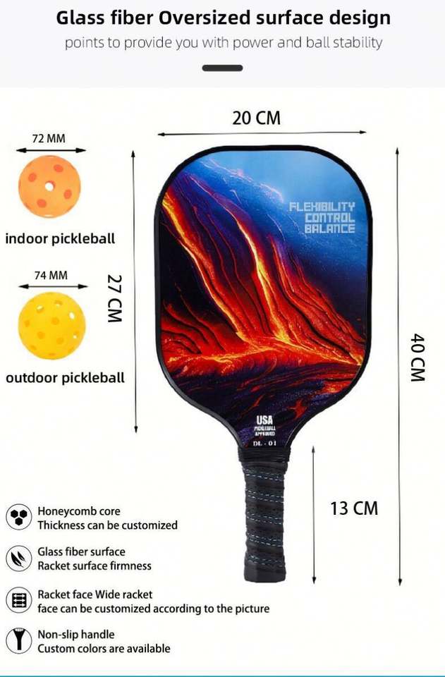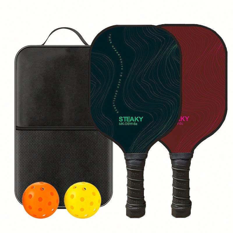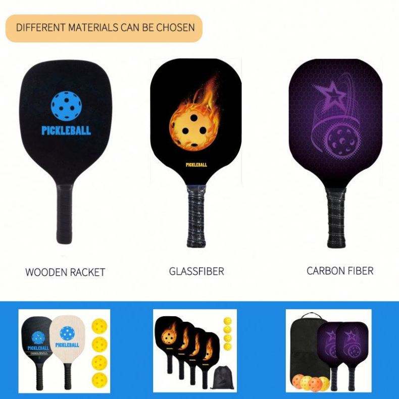 ไม้พายพิคเคิลบอลไฟเบอร์กลาสพร้อมโลโก้สั่งทำพิเศษ ผิวคาร์บอนไฟเบอร์ ชุด 2 ไม้ 4 ลูก 1 กระเป๋า