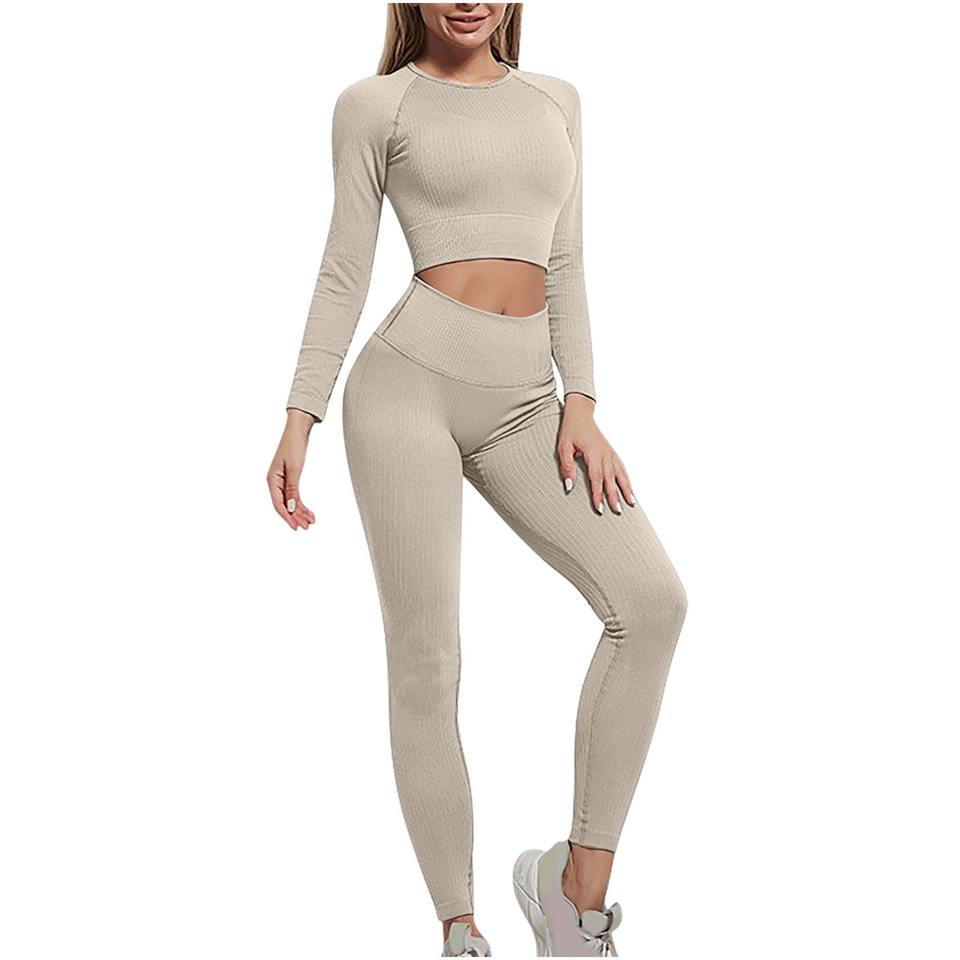 ชุดโยคะออกกำลังกายลายโลโก้แบบกำหนดเอง กางเกงเลกกิ้งเอวสูง 2 ชิ้น ยกกระชับสะโพก ชุดออกกำลังกายแขนยาวสำหรับผู้หญิง