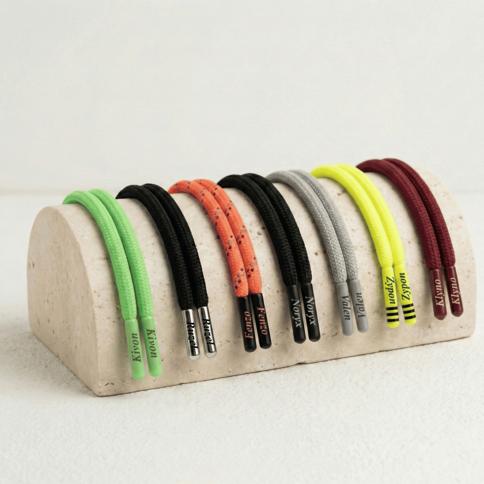 เชือกผูกแบบถัก 8 เส้น ผลิตจากโพลีเอสเตอร์/ฝ้ายเคลือบแว็กซ์ เป็นมิตรต่อสิ่งแวดล้อม พร้อมโลโก้สั่งทำ | เสื้อฮู้ด กางเกง สายรัดกระเป๋า สีตามสั่ง