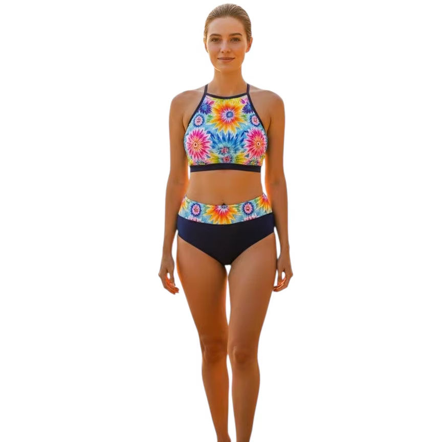 ชุดว่ายน้ำบิกินี่สองชิ้นแบบผูกคอ พิมพ์ลายดอกไม้ โลโก้สั่งทำได้ ทรงเอวสูง ตัดสูง ดีไซน์หรู ระบายอากาศได้ดี สำหรับผู้หญิง