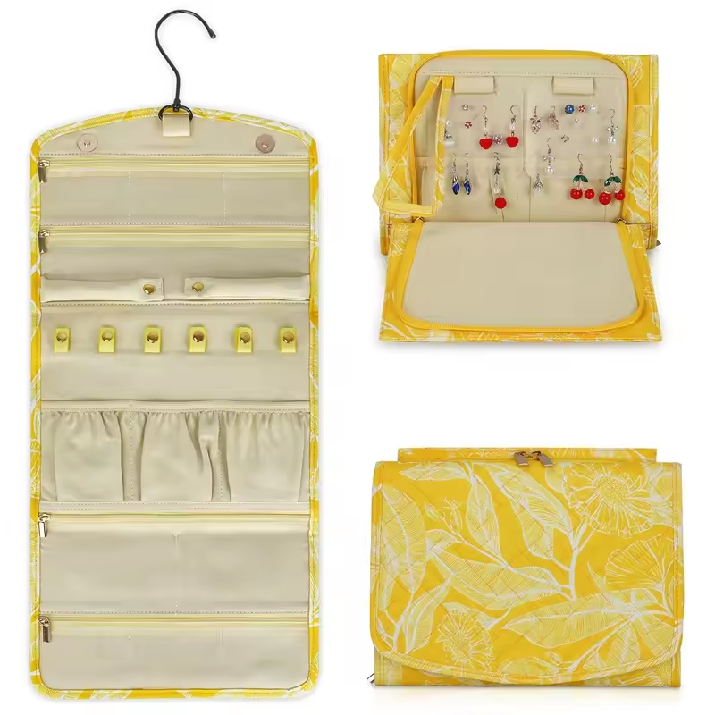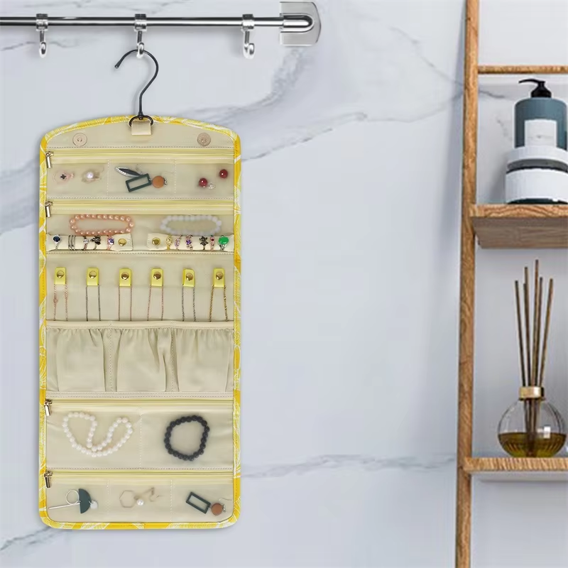 กระเป๋าเก็บเครื่องประดับแบบพับได้ กันน้ำ น้ำหนักเบา สำหรับเดินทาง พร้อมซิปและโลโก้สั่งทำพิเศษ มีตะขอแขวน