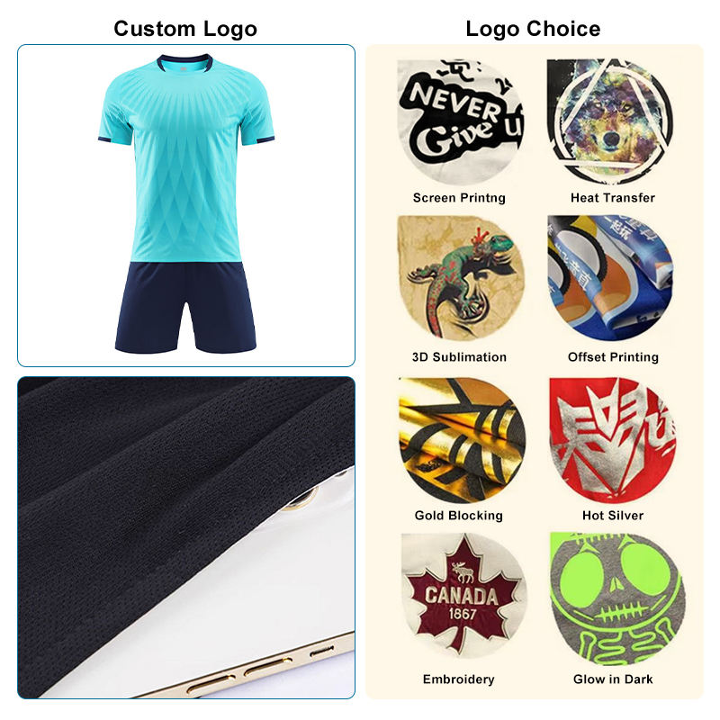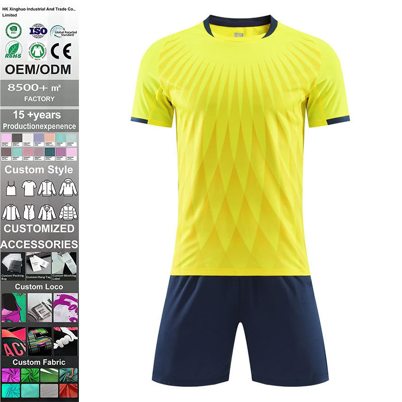 เสื้อฟุตบอลสำหรับผู้ใหญ่ผ้าโพลีเอสเตอร์/ ผ้าฝ้ายระบายอากาศได้ดีเสื้อคอลูกเรือแห้งเร็วทำจากผ้าโพลีเอสเตอร์ออกแบบโลโก้ได้ตามต้องการ