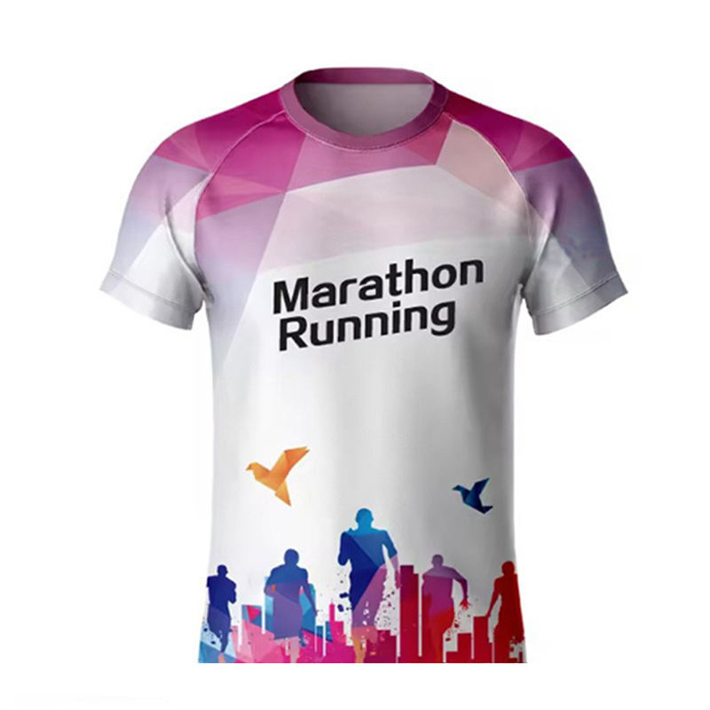 เสื้อยืดมาราธอนแขนสั้นทรงปกติสำหรับผู้ชาย ผ้าโพลีเอสเตอร์ 100% พิมพ์ลายโลโก้ตามสั่ง แห้งเร็ว สวมใส่สบาย เหมาะสำหรับวิ่ง พิมพ์ลายด้วยเทคนิคซิลค์สกรีน