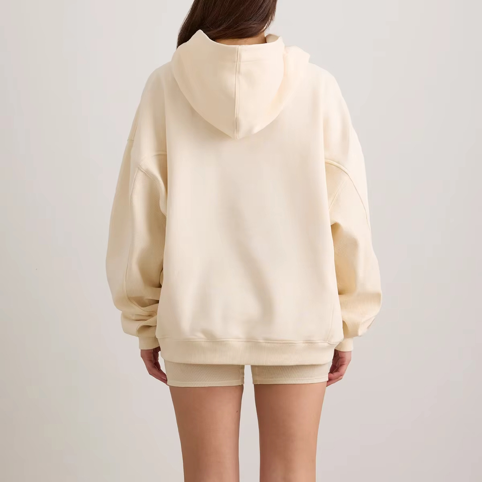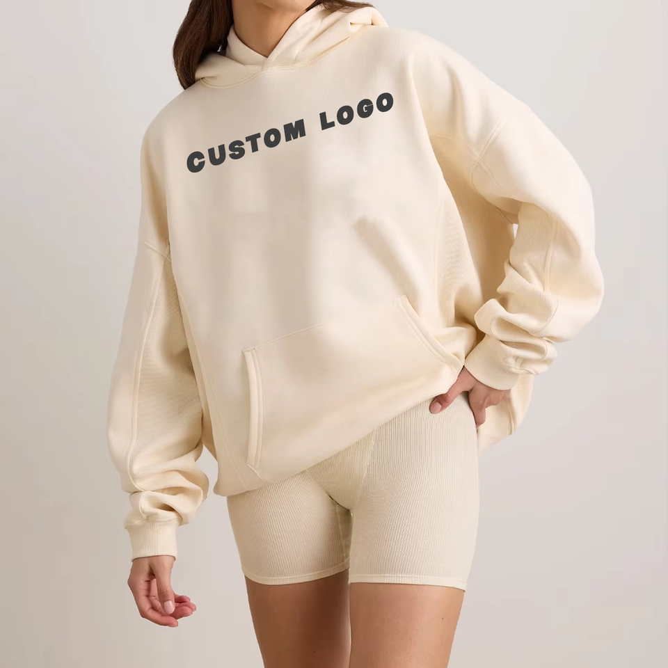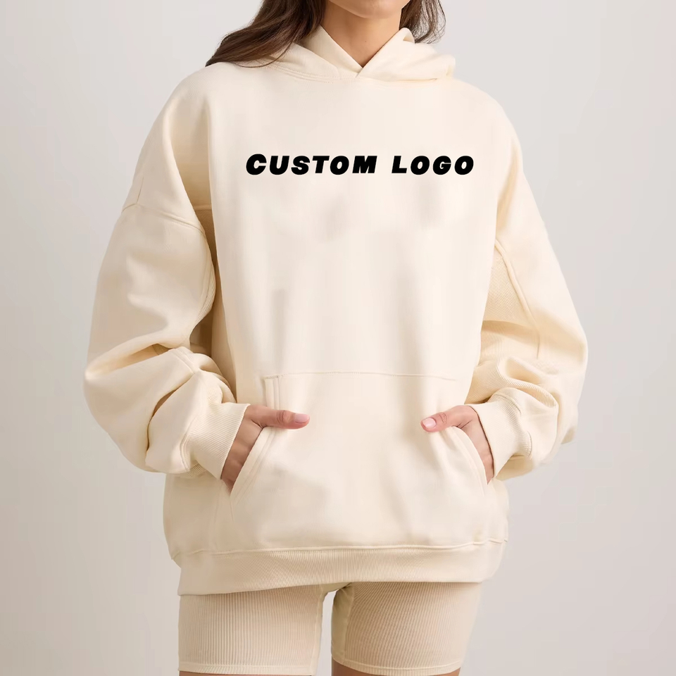 ชุดมีฮู้ดผ้าคอตตอนเป็นมิตรต่อสิ่งแวดล้อมสำหรับผู้หญิงชุดเสื้อมีฮู้ดแบบลำลองขนาดใหญ่พิเศษโลโก้ด้านหน้าออกแบบได้ตามต้องการ