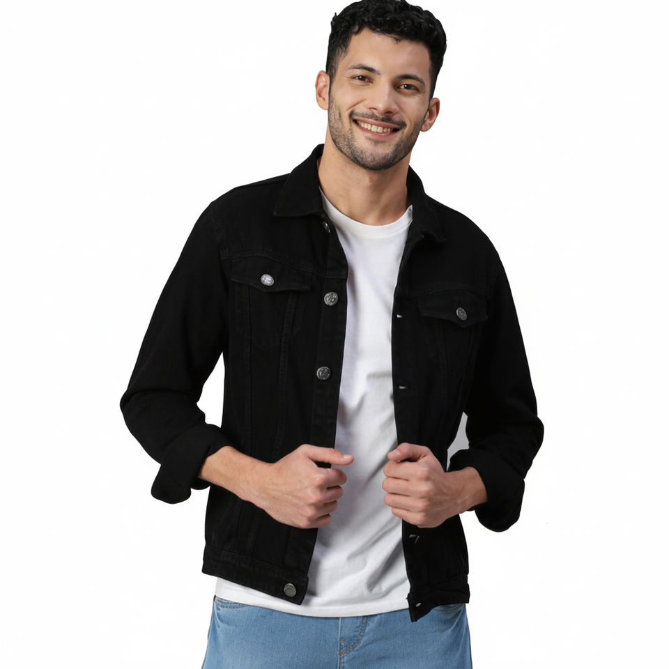 เสื้อแจ็กเก็ตผ้ายีนส์ของผู้ชายระบายอากาศได้พิมพ์ลายด้านหน้าโลโก้ที่กำหนดเอง