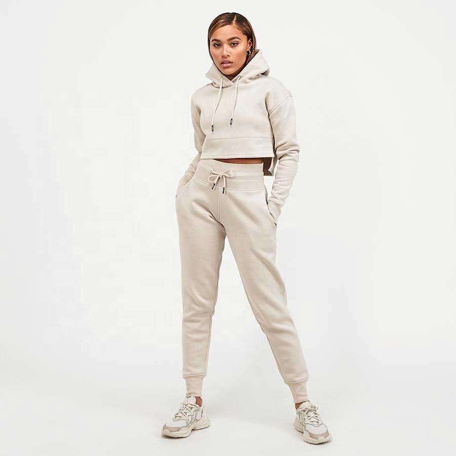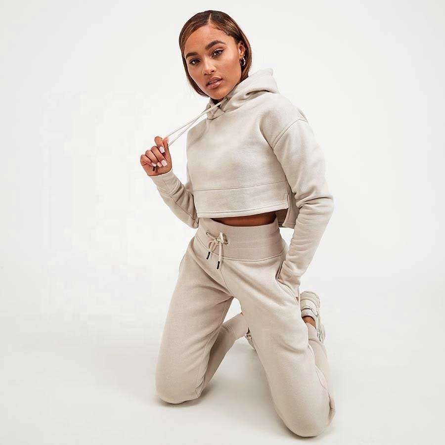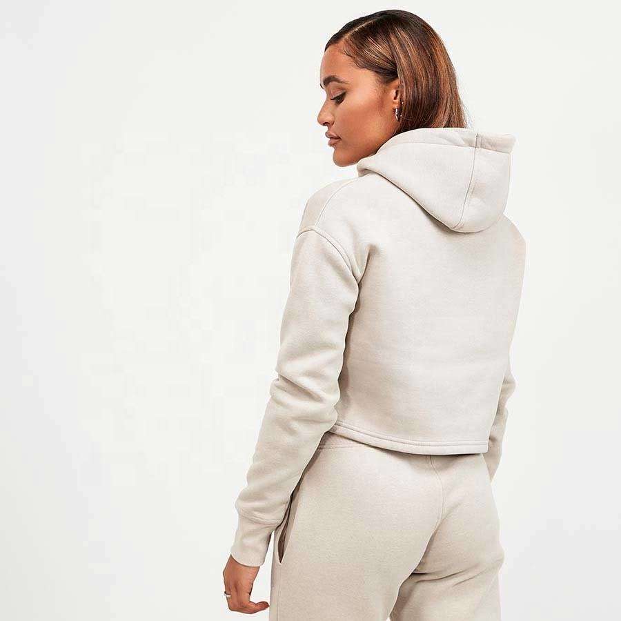 เสื้อฮู้ดครอปแขนยาวสีพื้นผ้าฝ้าย 100% สำหรับผู้หญิง ฤดูหนาว พร้อมโลโก้สั่งทำพิเศษ