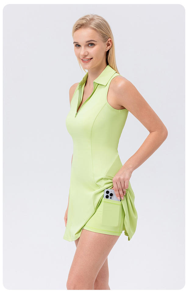 ชุดกระโปรงเล่นกอล์ฟสำหรับผู้หญิงกระโปรงเล่นเทนนิสชุดเล่นฟิตเนสสั้นดีไซน์มีซิปโลโก้ออกแบบได้ตามต้องการ