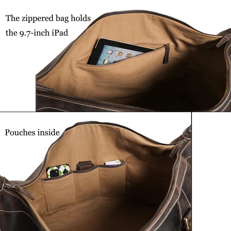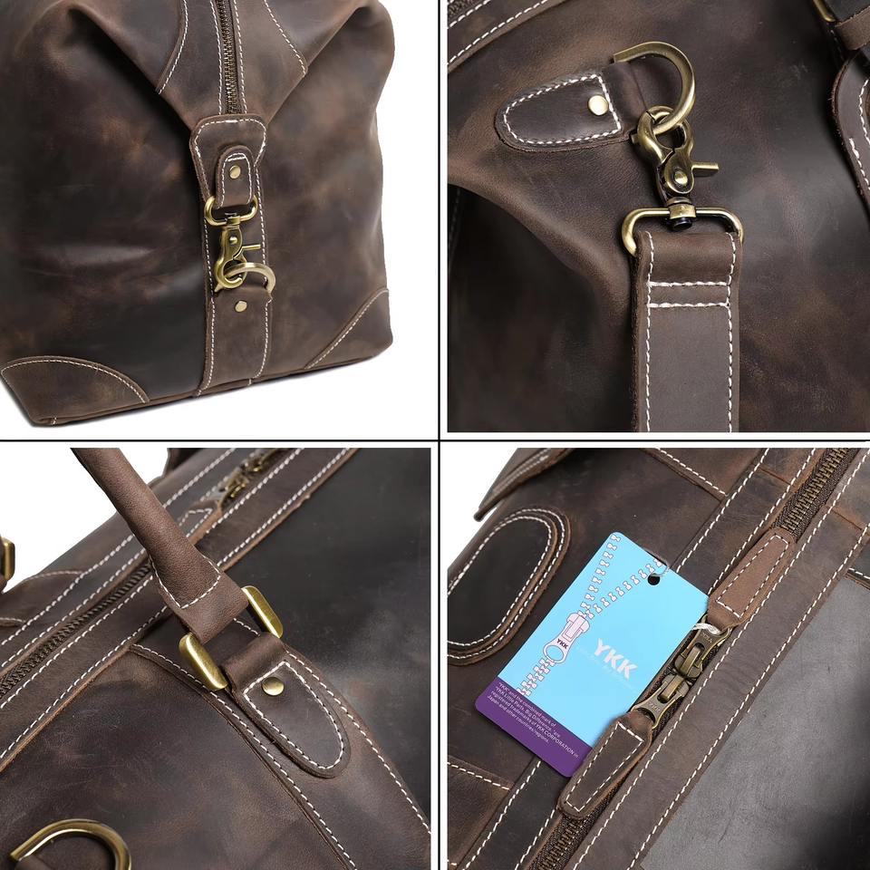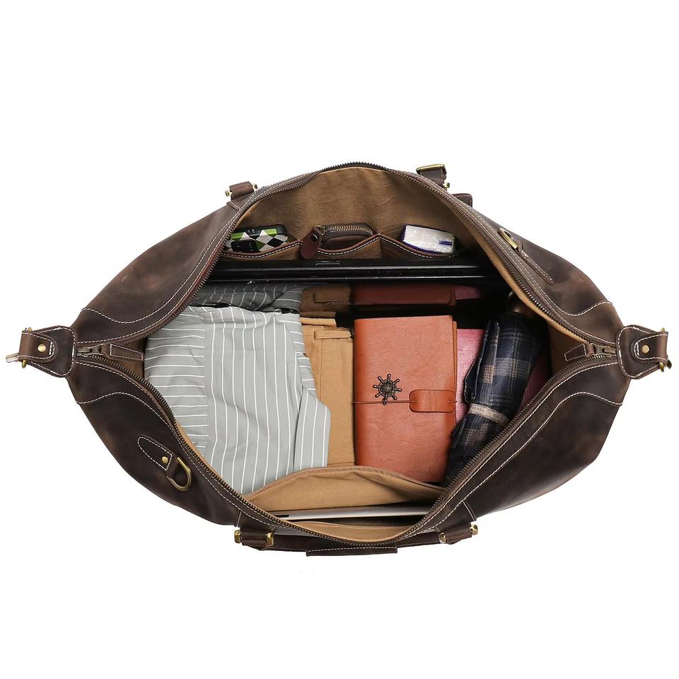 กระเป๋าเดินทางหนังแท้ปักโลโก้ได้ สายสะพายปรับได้ ซิปกันน้ำ ความจุขนาดใหญ่ สำหรับเดินทางท่องเที่ยวช่วงสุดสัปดาห์หรือค้างคืน เหมาะสำหรับทุกเพศ